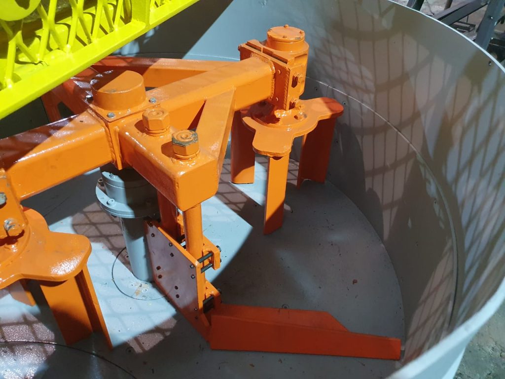 • Sistema de mistura composto por 2 conjuntos planetários passivos com 3 pás rotativas cada, assegurando a homogeneização de 100% do material dentro da cuba.